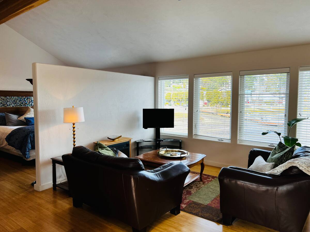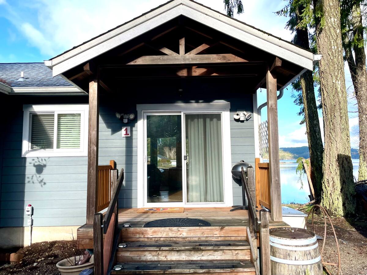 Hood Canal waterfront cottage for 2 behind Hood Canalè, the area's NEW wine room featuring wood fired pizza and wines from around the world. Enjoy this 1 bedroom studio with full kitchen/bath and king size bed with European style bedding. Take in your view, be captivated by seals, sea birds, fish and the marine breeze while lounging on your private deck. Only steps away from the local action to receive your guest discount! Minutes from downtown Union and walking distance to Alderbrook Resort.